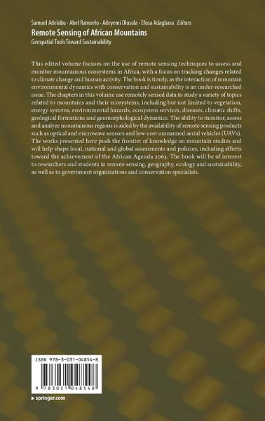 This edited volume focuses on the use of remote sensing techniques to assess and monitor mountainous ecosystems in Africa, with a focus on tracking changes related to climate change and human activity. The book is timely, as the interaction of mountain environmental dynamics with conservation and sustainability is an under-researched issue. The chapters in this volume use remotely sensed data to study a variety of topics related to mountains and their ecosystems, including but not limited to vegetation, energy systems, environmental hazards, ecosystem services, diseases, climatic shifts, geological formations and geomorphological dynamics. The ability to monitor, assess and analyze mountainous regions is aided by the availability of remote sensing products such as optical and microwave sensors and low-cost unmanned aerial vehicles (UAVs). The works presented here push the frontier of knowledge on mountain studies and will help shape local, national and global assessments and policies, including efforts toward the achievement of the African Agenda 2063. The book will be of interest to researchers and students in remote sensing, geography, ecology and sustainability, as well as to government organizations and conservation specialists.