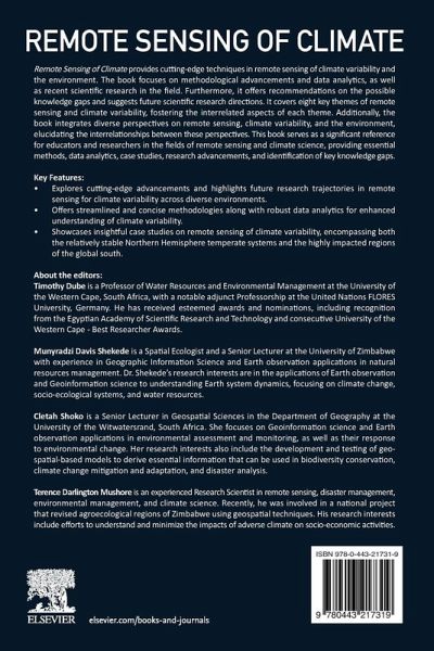 Remote Sensing of Climate provides cutting-edge techniques in remote sensing of climate variability and the environment. The book focuses on methods and data analytics, advancements in scientific research in the field, and further proffers recommendations on the possible knowledge gaps and future scientific research directions. It covers eight key themes of remote sensing and climate variability, including discussions on how the various aspects from each chapter of the themes interrelate. It also integrates several divergent perspectives on remote sensing and climate variability and the environment to show the interrelationships between the perspectives. This is an important reference for those in education and research working on remote sensing and climate science who need methods, data analytics, case studies, research strides, and key knowledge gaps in the field.