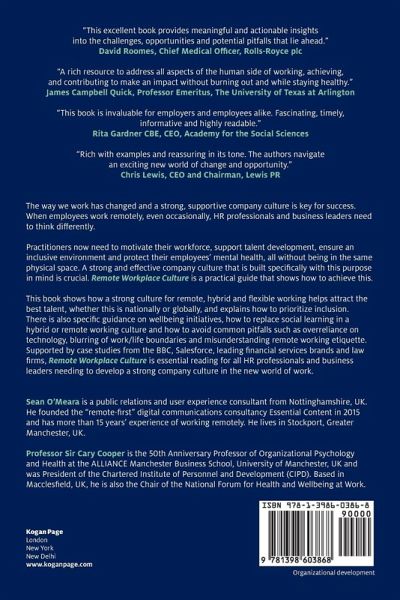 Practitioners now need to motivate their workforce, support talent development, ensure an inclusive environment and protect their employees' mental health, all without being in the same physical space. A strong and effective company culture that is built specifically with this purpose in mind is crucial. Remote Workplace Culture is a practical guide that shows how to achieve this and explains why simply replicating what used to happen in the office in a virtual environment doesn't work.
