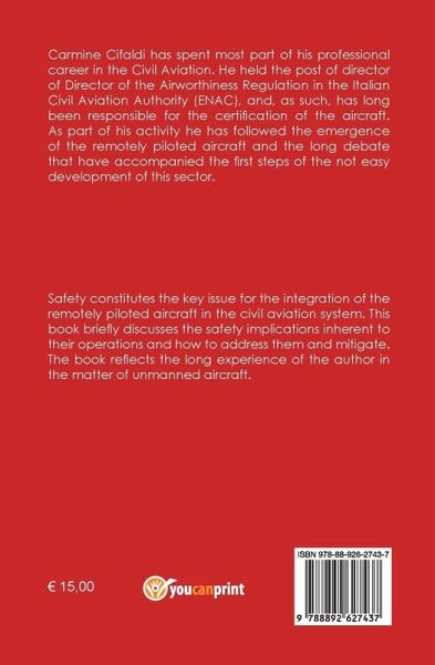 Safety is the paramount objective of civil aviation. How safe is safe, is a question that pertains all the human activities, the integration of the remotely-piloted aircraft systems into the civil aviation system is based on the principle that existing safety will not be compromised. The book discusses briefly the risks inherent to the remotely-piloted aircraft operations, discusses the concept of risk, analyses the safety implications of the operations, and, addressing, in particular, the small remotely-piloted aircraft, provides some indications on how to conduct a safety risk assessment to verify the suitability of remotely-piloted aircraft systems to the operations.