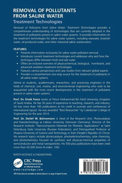 This book provides a comprehensive understanding of technologies that are currently adopted in the treatment of pollutants present in saline water systems. It presents information on the treatment technologies for saline water systems, which includes seawater, brackish water, oil produced water, and other industrial saline wastewaters.