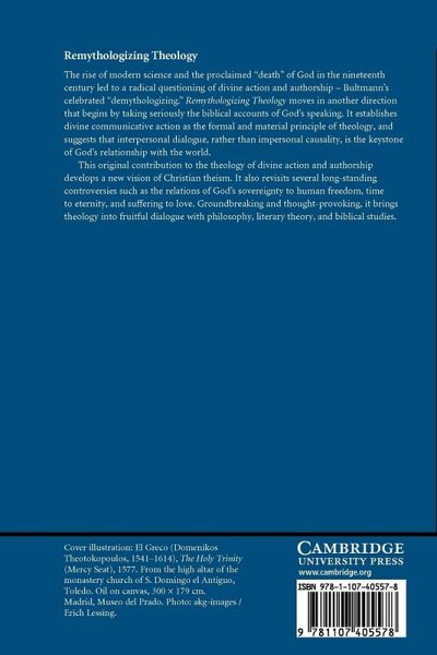 The rise of modern science and the proclaimed 'death' of God in the nineteenth century led to a radical questioning of divine action and authorship - Bultmann's celebrated 'demythologizing'. Remythologizing Theology moves in another direction that begins by taking seriously the biblical accounts of God's speaking. It establishes divine communicative action as the formal and material principle of theology, and suggests that interpersonal dialogue, rather than impersonal causality, is the keystone of God's relationship with the world. This original contribution to the theology of divine action and authorship develops a fresh vision of Christian theism. It also revisits several long-standing controversies such as the relations of God's sovereignty to human freedom, time to eternity, and suffering to love. Groundbreaking and thought-provoking, it brings theology into fruitful dialogue with philosophy, literary theory, and biblical studies.