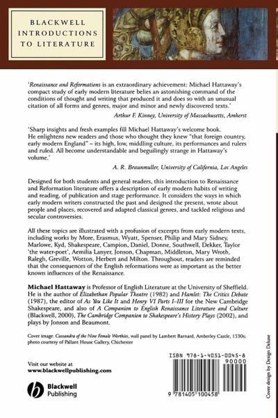 "Renaissance and Reformations is an extraordinary achievement:Michael Hattaway's compact study of Early Modern literature beliesan astonishing command of the conditions of thought and writingthat produced it and does so with an unusual citation of all formsand genres, major and minor and newly-discovered texts. As aresult, he is able to take us into the imaginative processes of thetime to show us the sheer pleasures these works held as no otherstudy has done." Arthur F. Kinney, University of Massachusetts,Amherst