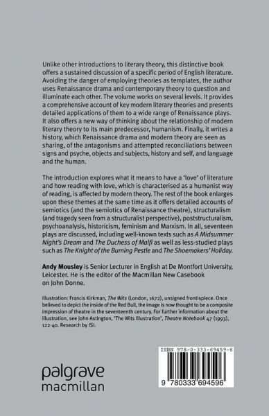 Unlike other introductions to literary theory, this book offers a sustained discussion of a specific period of English Literature. Avoiding the danger of employing theories as templates, the book uses Renaissance drama and literary theory to question and illuminate each other. Love, money, alienation and exotic death are amongst the various topics discussed. The book also provides a distinctive and comprehensive account of literary theory's complex relationship with its main predecessor, humanism. In all, seventeen plays are discussed including well-known texts, such as A Midsummer Night's Dream and The Duchess of Malfi, as well as less-studied plays such as The Knight of the Burning Pestle and The Shoemakers' Holiday. Unlike other introductions to literary theory, this book offers a sustained discussion of a specific period of English Literature. Avoiding the danger of employing theories as templates, the book uses Renaissance drama and literary theory to question and illuminate each other. Love, money, alienation and exotic death are amongst the various topics discussed. The book also provides a distinctive and comprehensive account of literary theory's complex relationship with its main predecessor, humanism. In all, seventeen plays are discussed including well-known texts, such as A Midsummer Night's Dream and The Duchess of Malfi, as well as less-studied plays such as The Knight of the Burning Pestle and The Shoemakers' Holiday.