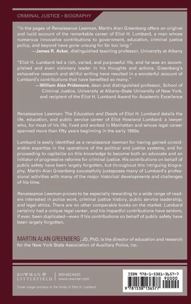 Renaissance Lawman details the life, education path, and career choices of Eliot Howland Lumbard -an all too forgotten pioneer of the criminal justice field-and how he helped reform and develop the American Criminal Justice system into what we know today.