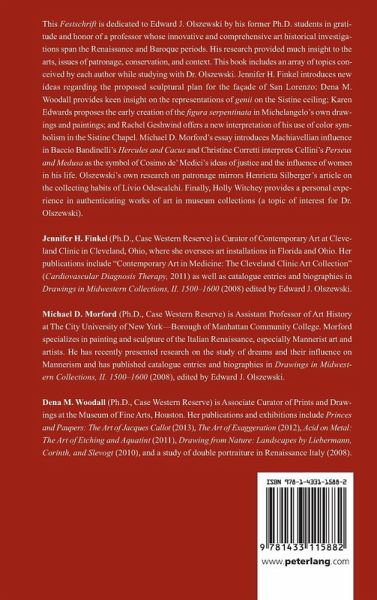 This Festschrift is dedicated to Edward J. Olszewski and was created by his former PhD students in gratitude and honor of a professor whose innovative and comprehensive research spans the Renaissance and Baroque periods. His research provided much insight to the arts, issues of patronage, conservation, and context. The text includes an array of topics conceived by each author while studying with Olszewski. His intense seminar on Michelangelo was the catalyst for many articles: Jennifer Finkel introduces new ideas regarding the proposed sculptural plan for the façade of San Lorenzo; Dena M. Woodall provides keen insight on the representations of genii on the Sistine Ceiling; Karen Edwards proposes the early creation of the figura serpentinata in Michelangelo's own drawings and paintings; and Rachel Geshwind offers a new interpretation of his use of color symbolism in the Sistine Chapel. This seminar, and another on Mannerism, involved provocative discussion of the competitors of Michelangelo, where the foundation was laid for the much needed re-examination of Baccio Bandinelli's Hercules and Cacus in Michael Morford's article, which introduces the probability of Machiavellian influence, and Christine Corretti's interpretation of Cellini's Perseus and Medusa as the symbol of Cosimo's I ideas of justice and the influence of women in his life. Olszewski's own research on patronage, especially of the Ottoboni, mirrors Henrietta Silberger's article on the collecting habits of Livio Odescalchi. Finally, Holley Witchey provides a personal experience in authenticating works of art in collections (a topic of interest for Olszewski) and ends her essay with a series of important questions for each of us to ask ourselves.