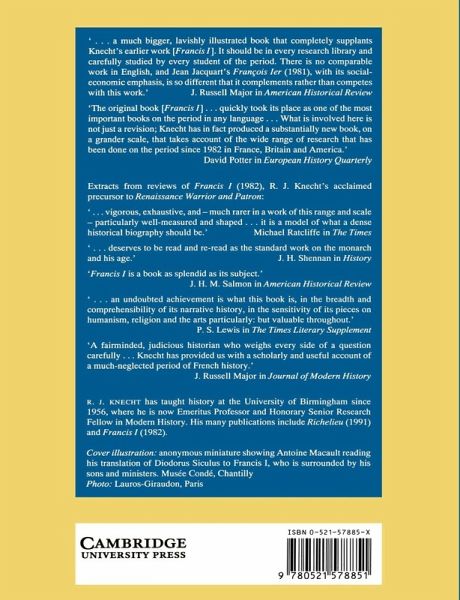 This book offers a full and comprehensive account of one of the most colourful and formative reigns in French history, that of Francis I (1515-47), and is published to coincide with the 500th anniversary of his birth in September 1494.