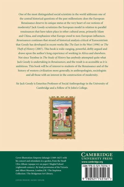 Distinguished social scientist Jack Goody addresses a core historical question: does the European Renaissance deserve its status at the heart of our notions of modernity? Goody scrutinises the European model in relation to parallel renaissances that have taken place in other cultural areas, emphasising what Europe owed to non-European influences. One of the most distinguished social scientists in the world addresses one of the central historical questions of the past millennium: does the European Renaissance deserve its unique status at the very heart of our notions of modernity? Jack Goody scrutinises the European model in relation to parallel renaissances that have taken place in other cultural areas, primarily Islam and China, and emphasises what Europe owed to non-European influences. Renaissances continues that strand of historical analysis critical of Eurocentrism that Goody has developed in recent works like The East and the West (1996) or The Theft of History (2006). Thisbook is wide-ranging, powerful, deftly argued, and draws upon the author's long experience of working in Africa and elsewhere. Not since Toynbee in The Study of History has anybody attempted quite what Jack Goody is undertaking in Renaissances, and the result is as accessible as it is ambitious.