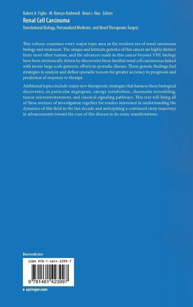 This volume examines every major topic area in the modern era of renal carcinoma biology and treatment. The unique and intricate genetics of this cancer are highly distinct from most other tumors, and the advances made in this cancer beyond VHL biology have been intrinsically driven by discoveries from familial renal cell carcinomas linked with newer large scale genomic efforts in sporadic disease. These genetic findings fuel strategies to analyze and define sporadic tumors for greater accuracy in prognosis and prediction of response to therapy.