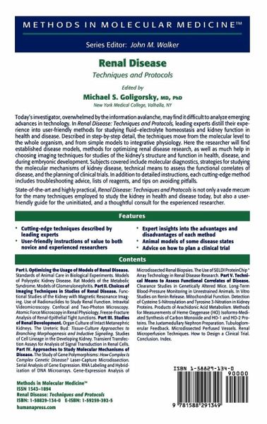 Optimizing The Usage of Models Renal Disease.- Standards of Animal Care in Biological Experiments.- Models of Polycystic Kidney Disease.- Rat Models of the Metabolic Syndrome.- Models of Glomerulonephritis.- Choices of Imaging Techniques in Studies of Renal Disease.- Functional Studies of the Kidney with Magnetic Resonance Imaging.- Use of Radionuclides to Study Renal Function.- Intravital Videomicroscopy.- Confocal and Two-Photon Microscopy.- Atomic Force Microscopy in Renal Physiology.- Freeze-Fracture Analysis of Renal-Epithelial Tight Junctions.- Studies of Renal Development.- Organ Culture of Intact Metanephric Kidneys.- The Ureteric Bud.- Studies of Cell Lineage in the Developing Kidney.- Transient Transfection Assays for Analysis of Signal Transduction in Renal Cells.- Approaches to Study Molecular Mechanisms of Disease.- The Study of Gene Polymorphisms.- Laser-Capture Microdissection.- Serial Analysis of Gene Expression.- RNA Labeling and Hybridization of DNA Microarrays.- Gene-Expression Analysis of Microdissected Renal Biopsies.- The Use of SELDI ProteinChip® Array Technology in Renal Disease Research.- Technical Means to Assess Functional Correlates of Disease.- Clearance Studies in Genetically Altered Mice.- Long-Term Blood-Pressure Monitoring in Unrestrained Animals.- In Vitro Studies on Renin Release.- Mitochondrial Function.- Detection of Cysteine S-Nitrosylation and Tyrosine 3-Nitration in Kidney Proteins.- Products of Arachidonic Acid Metabolism.- Methods for Measurements of Heme Oxygenase (HO) Isoforms-Mediated Synthesis of Carbon Monoxide and HO-1 and HO-2 Proteins.- The Juxtamedullary Nephron Preparation.- Tubuloglomerular Feedback.- Microdissected Perfused Vessels.- Renal Microperfusion Techniques.- How to Design a Clinical Trial.- Mapping theDisease.