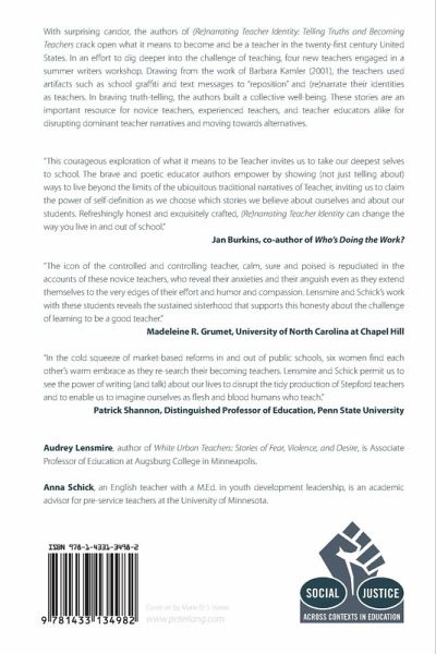 With surprising candor, the authors of (Re)narrating Teacher Identity: Telling Truths and Becoming Teachers crack open what it means to become and be a teacher in the twenty-first century United States. In an effort to dig deeper into the challenge of teaching, four new teachers engaged in a summer writers workshop. Drawing from the work of Barbara Kamler (2001), the teachers used artifacts such as school graffiti and text messages to "reposition" and (re)narrate their identities as teachers. In braving truth-telling, the authors built a collective well-being. These stories are an important resource for novice teachers, experienced teachers, and teacher educators alike for disrupting dominant teacher narratives and moving towards alternatives.