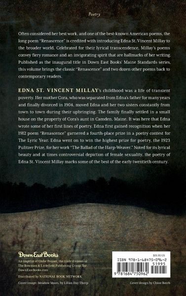 Often considered her best work, and one of the best-known American poems, the long poem "Renascence" is credited with introducing Edna St. Vincent Millay to a the broader world. Celebrated for their lyrical transcendence, Millay's poems convey fiery romance and an invigorating spirit that are hallmarks of her writing. Published as the inaugural title in Down East Books Maine Standards series, this volume brings the classic "Renascence" and two dozen other poems back to contemporary readers.