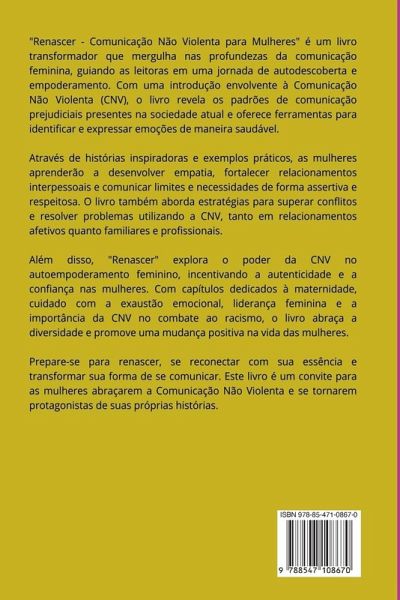 Renascer - Comunicação Não Violenta para Mulheres é um livro transformador que mergulha nas profundezas da comunicação feminina, guiando as leitoras