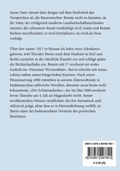 1817 in Husum als Sohn eines Advokaten geboren, tritt Theodor Storm nach dem Studium in Kiel und Berlin zunächst in die väterliche Kanzlei ein und schlägt später die Richterlaufbahn ein. Bereits mit 17 erscheint ein erstes Gedicht im "Husumer Wochenblatt". Storm schreibt zeit seines Lebens neben seiner bürgerlichen Karriere. Nach seiner Pensionierung 1880 entstehen in seinem Alterswohnsitz in Hademarschen zahlreiche Novellen, darunter seine heute wohl bekannteste, "Der Schimmelreiter", der im Mai 1888 erscheint bevor Theodor am 4. Juli an Magenkrebs stirbt. Seiner norddeutschen Heimat verpflichtet, die ihn thematisch und stilistisch prägt, ohne dass er in Heimatdichtung verfällt, ist Storm einer der bedeutendsten Vertreter des poetischen Realismus.