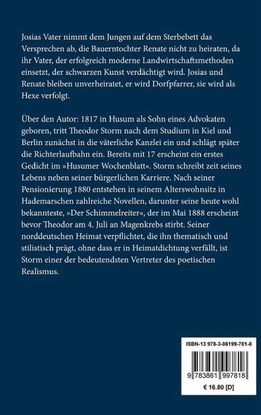 Josias Vater nimmt dem Jungen auf dem Sterbebett das Versprechen ab, die Bauerntochter Renate nicht zu heiraten, da ihr Vater, der erfolgreich moderne Landwirtschaftsmethoden einsetzt, der schwarzen Kunst verdächtigt wird. Josias und Renate bleiben unverheiratet, er wird Dorfpfarrer, sie wird als Hexe verfolgt.