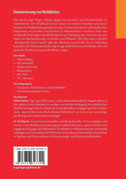 Der Wert des Waldes.- Neue Waldschäden durch Trockenheit.- Boden- und Pflanzen-Regeneration über die Mechanismen der "Biologischen Intervention".- Die Leistungsfähigkeit der Waldgesellschaft.- Das System "Initialzelle".- Das Bodenleben als Multiplikator.- Weitere Erfolgsstrategien zur aktiven Bodenrevitalisierung.- Grundprinzipien der Waldgesundheit.- Für einen zukunftsorientierten Landbau.- Ein Phänomen: Trockenheit und Überschwemmung sind Geschwister.- Ein Leben als Säureflüchter.- Waldumbau