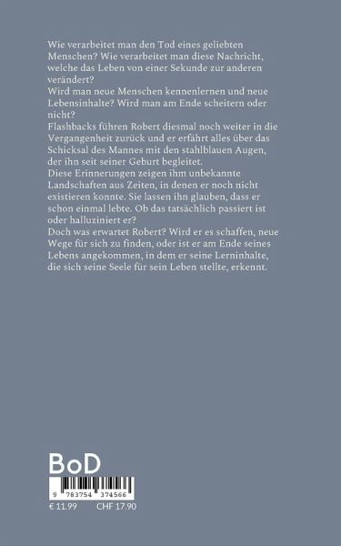 Wie verarbeitet man den Tod eines geliebten Menschen. Wie verarbeitet man diese Nachricht, welche das Leben von einer Sekunde zur anderen verändert. Wird man neue Menschen kennenlernen und neue Lebensinhalte? Wird man am Ende scheitern oder nicht? Flashbacks führen Robert diesmal noch weiter in die Vergangenheit zurück. Er erfährt alles über das Schicksal des Mannes mit den stahlblauen Augen, der ihn seit seiner Geburt begleitet. Diese Erinnerungen zeigen ihm unbekannte Landschaften aus Zeiten, in denen er noch nicht existieren konnte. Sie lassen ihn glauben, dass er schon einmal lebte. Ob das…mehr