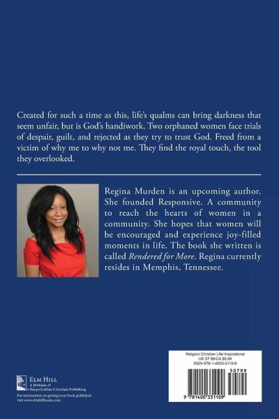 Created for such a time as this, life's qualms can bring darkness that seem unfair, but is God's handiwork. Two orphaned women face trials of despair, guilt, and rejected as they try to trust God. Freed from a victim of why me to why not me. They find the royal touch, the tool they overlooked.