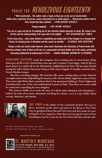 Rendezvous Eighteenth marks the emergence of an exciting voice in crime fiction. Ricky Jenks gave up life in the U.S. years ago and is content, if not happy, with his life as a piano player in a small café in the Montmartre neighborhood of Paris. He has many friends among the other African-Americans living in Paris and is happily, if casually, involved with a French Muslim woman. But then everything changes. His American life comes crashing down on him when his estranged cousin wants help finding his runaway wife, whom he thinks might have come to Paris, even though he's vague about why. That same night Ricky finds a prostitute dead in his apartment building in Paris's Eighteenth Arrondissment, one of the most multicultural sections of Paris. That these two events could be connected is something he never imagines. This intricate, absorbing thriller is ultimately much more than a suspense novel. Lamar's detailed and vibrant portrait of life in Paris is as much the story of a black man's alienation and redemption-indeed, the story of an entire community searching for a home-as it is a taut thriller about revenge, obsession, and murder.