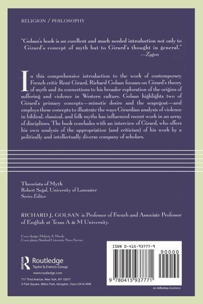 In this comprehensive introduction to the work of contemporary French critic Rene Girard, Richard Golsan focuses on Girard's theory of myth and its connections to his broader exploration of the origins of suffering and violence in Western culture. Golsan highlights two of Girard's primary concepts--mimetic desire and the scapegoat--and employs the concepts to illustrate the ways Girardian analysis of violence in biblical, classical, and folk myths has influenced recent work in theology, psychology, literary studies, and anthropology. The book concludes with an interview between Golsan and Girard, who offers his own analysis of the appropriation (and criticism) of his work by a politically and intellectually diverse company of scholars.