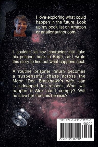 Overpowered by his prisoner on the Moon's orbiting station, Alex has to rely on his partner. His wife, Jan, catches the next shuttle to the Moon. but is kidnapped. When a plasma fight breaks out between the fugitive and the space police, a deadly result occurs. (Book 1). Will Jan escape? Can the prisoner's daughter change his mind? Will Alex save Jan before aphelion?