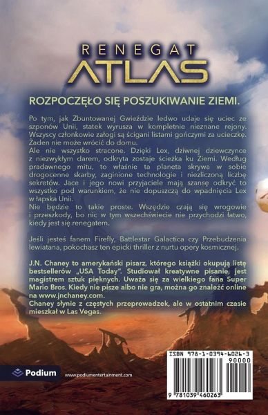 Rozpocz¿¿o si¿ poszukiwanie Ziemi. Po tym, jak Zbuntowanej Gwie¿dzie ledwo udaje si¿ uciec ze szponów Unii, statek wyrusza w kompletnie nieznane rejony. Wszyscy cz¿onkowie zäogi s¿ ¿cigani listami göczymi za ucieczk¿. ¿aden nie möe wróci¿ do domu. Ale nie wszystko stracone. Dzi¿ki Lex, dziwnej dziewczynce z niezwyk¿ym darem, odkryta zostaje ¿cie¿ka ku Ziemi. Wed¿ug pradawnego mitu, to w¿änie ta planeta skrywa w sobie drogocenne skarby, zaginione technologie i niezliczon¿ liczb¿ sekretów. Jace i jego nowi przyjaciele maj¿ szans¿ odkry¿ to wszystko pod warunkiem, ¿e nie dopuszcz¿ do wpadni¿cia Lex w ¿apska Unii. Nie b¿dzie to takie proste. Wsz¿dzie czaj¿ si¿ wrogowie i przeszkody, bo nic w tym wszech¿wiecie nie przychodzi ¿atwo, kiedy jest si¿ renegatem. Je¿li jeste¿ fanem Firefly, Battlestar Galactica czy Przebudzenia lewiatana, pokochasz ten epicki thriller z nurtu opery kosmicznej.