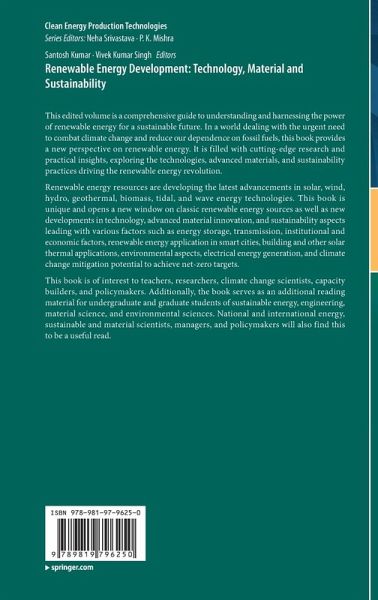 This edited volume is a comprehensive guide to understanding and harnessing the power of renewable energy for a sustainable future. In a world dealing with the urgent need to combat climate change and reduce our dependence on fossil fuels, this book provides a new perspective on renewable energy. It is filled with cutting-edge research and practical insights, exploring the technologies, advanced materials, and sustainability practices driving the renewable energy revolution.