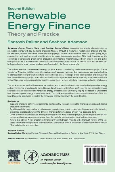 Renewable Energy Finance: Theory and Practice, Second Edition integrates the special characteristics of renewable energy with key elements of project finance. Through a mixture of fundamental analysis and real-life examples, readers learn how renewable energy project finance deals mix finance, public policy, legal, engineering and environmental issues. This book investigates the economics of large-scale green power production and incentive mechanisms and how they fit into the global energy industries. It also examines how distributed energy resources such as residential solar and batteries can be financed at the scale needed to play a significant role in the future energy mix. The authors examine how renewable energy projects get financed and built using modern non-recourse project finance structures. It also highlights recent innovations such as Green Bonds and Sustainability Linked Loans that have emerged in the context of ESG investments. The scope of the book is global, and it illustrates how renewable energy project finance has evolved in various places (such as the tax-equity structures used in the United States, due to the corporate tax incentives used there) to cope with local regulatory and policy environments.