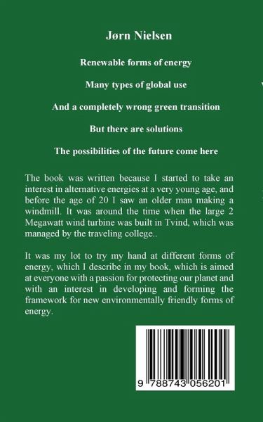 The book was written because I started to take an interest in alternative energies at a very young age, and before the age of 20 I saw an older man making a windmill. It was around the time when the large 2 Megawatt wind turbine was built in Tvind, which was managed by the traveling college.It was my lot to try my hand at different forms of energy, which I describe in my book, which is aimed at everyone with a passion for protecting our planet and with an interest in developing and forming the framework for new environmentally friendly forms of energy.