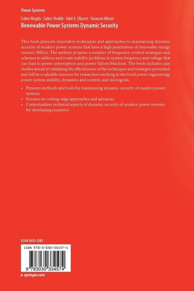 This book presents innovative techniques and approaches to maintaining dynamic security of modern power systems that have a high penetration of renewable energy sources (RESs). The authors propose a number of frequency control strategies and schemes to address and evade stability problems in system frequency and voltage that can lead to power interruption and power failure/blackout. The book includes case studies aimed at validating the effectiveness of the techniques and strategies presented, and will be a valuable resource for researchers working in electrical power engineering, power system stability, dynamics and control, and microgrids.