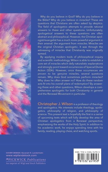 Why do you believe in God? Why do you believe in the Bible? Why do you believe in miracles? These are questions that Christians are often asked by sceptics. The field of apologetics attempts to provide rational answers to these and other questions. Unfortunately, apologetical answers to these questions are often abstract and philosophical. However, the Christian apologist/evangelist has a much more powerful argument in their arsenal: the argument from miracles. Miracles are the original Christian apologetic. It was through the witnessing of miracles that Christianity was originally spread. By applying modern tools of philosophical inquiry and scientific methodology, Wilson is able to establish a core set of miracles which defy naturalistic explanations and strongly point toward occurrences of Special Divine Action (SDA). However, once these occurrences are proven to be genuine miracles, several questions remain. Why does God sometimes perform miracles? Why does he often answer no? How do these random acts fit into his overall plans of redemption? By answering these and other questions, Wilson develops a comprehensive apologetic for both Christianity in general and the Renewal Movement in particular.