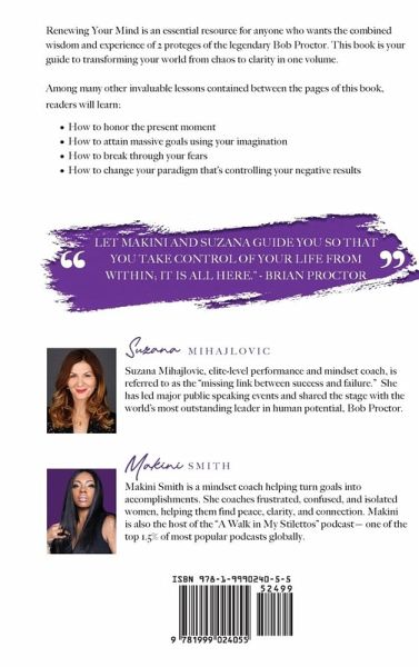 Renewing Your Mind presents transcripts from Makini Smith & Suzana Mihajlovic, mindset coaches and Proctor Gallagher consultants' workshops. It is an essential resource for anyone who wants the combined wisdom and experience of 2 proteges of the legendary Bob Proctor. This book is your guide to transforming your world from chaos to clarity in one volume. Among many other invaluable lessons contained between the pages of this book, readers will learn:How to honor the present moment How to take care of your mind, body & soul How to attain massive goals using your imagination How to break through…mehr