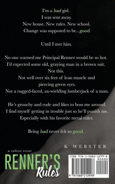 I'm a bad girl. I was sent away. New house. New rules. New school. Change was supposed to be...good. Until I met him. No one warned me Principal Renner would be so hot. I'd expected some old, graying man in a brown suit. Not this. Not well over six feet of lean muscle and piercing green eyes. Not a rugged-faced, ax-wielding lumberjack of a man. He's grouchy and rude and likes to boss me around. I find myself getting in trouble just so he'll punish me. Especially with his favorite metal ruler. Being bad never felt so good.