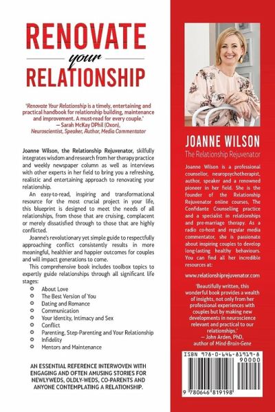 AN ESSENTIAL REFERENCE INTERWOVEN WITH ENGAGING AND OFTEN AMUSING STORIES FOR NEWLYWEDS, OLDLY-WEDS, CO-PARENTS AND ANYONE CONTEMPLATING A RELATIONSHIP. Joanne Wilson, the Relationship Rejuvenator, skilfully integrates wisdom and research from her therapy practice and weekly newspaper column as well as interviews with other experts in her field to bring you a refreshing, realistic and entertaining approach to renovating your relationship. An easy-to-read, inspiring and transformational resource for the most crucial project in your life, this blueprint is designed to meet the needs of all relationships, from those that are cruising, complacent or merely dissatisfied through to those that are highly conflicted. Joanne's revolutionary yet simple guide to respectfully approaching conflict consistently results in more meaningful, healthier and happier outcomes for couples and will impact generations to come. This comprehensive book includes toolbox topics to expertly guide relationships through all significant life stages: ¿ About Love ¿ The Best Version of You ¿ Dating and Romance ¿ Communication ¿ Your Identity, Intimacy and Sex ¿ Conflict ¿ Parenting, Step-Parenting and Your Relationship ¿ Infidelity ¿ Mentors and Maintenance
