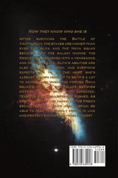 Now they know who she is. After surviving the Battle of Vanthurium, the stakes are higher than ever for Aliya and the Nova squad because now the galaxy knows: the Krech have returned with a vengeance and no one is safe. Aliya's abilities are also out in the open, and everyone expects her to be the hero she's already shown herself to be. It's a lot to handle and when the former Nova squad's role at the palace becomes different from what they expected, tensions rise and limits are pushed. As destruction at the hands of the Krech escalates, will Aliya and Caspian be able to keep the unruly prince in line and protect each other from danger?