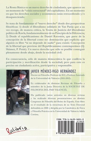 La Renta Básica es un nuevo derecho de ciudadanía, que aparece en un momento de "crisis estructural" del capitalismo. En un momento en que los derechos sociales y económicos están retrocediendo y/o desapareciendo. Se trata de fundamentar el "nuevo derecho" desde dos perspectivas filosóficas: 1) desde el liberalismo solidario de Van Parijs que a su vez recoge, de manera crítica, la Teoría de Justicia del liberalismo político de Rawls, fundamentalmente de su Principio de la Diferencia; 2) Desde el republicanismo de Daniel Raventós, que parte de la concepción de la libertad como no- dominación que explicita que alguien es libre "si no depende de nadie" para existir. Concepción de la libertad que proviene del Republicanismo contemporáneo (Q. Skinner, P. Pettit). Un nuevo derecho que sólo es posible conseguir plenamente desde abajo, desde la sociedad civil. En consecuencia, sólo de manera democrática lo que conlleva la participación y movilización desde la sociedad; pero para esto es preciso un ciudadanía activa, participativa y responsable