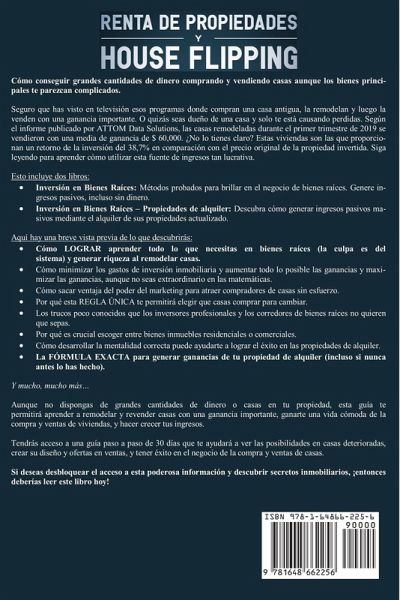 Cómo conseguir grandes cantidades de dinero comprando y vendiendo casas aunque los bienes principales te parezcan complicados. Seguro que has visto en televisión esos programas donde compran una casa antigua, la remodelan y luego la venden con una ganancia importante. O quizás seas dueño de una casa y solo te està causando perdidas. Según el informe publicado por ATTOM Data Solutions, las casas remodeladas durante el primer trimestre de 2019 se vendieron con una media de ganancia de $ 60,000. ¿No lo tienes claro? Estas viviendas son las que proporcionan un retorno de la inversión del 38,7% en comparación con el precio original de la propiedad invertida. Siga leyendo para aprender còmo utilizar esta fuente de ingresos tan lucrativa. Esto incluye dos libros: Inversión en Bienes Raíces: Métodos probados para brillar en el negocio de bienes raíces. Genere ingresos pasivos, incluso sin dinero. Inversión en Bienes Raíces - Propiedades de alquiler: Descubra cómo generar ingresos pasivos masivos mediante el alquiler de sus propiedades actualizado. Aquí hay una breve vista previa de lo que descubrirás:Cómo LOGRAR aprender todo lo que necesitas en bienes raíces (la culpa es del sistema) y generar riqueza al remodelar casas. Cómo minimizar los gastos de inversión inmobiliaria y aumentar todo lo posible las ganancias y maximizar las ganancias, aunque no seas extraordinario en las matemáticas Cómo sacar ventaja del poder del marketing para atraer compradores de casas sin esfuerzo. Por qué esta REGLA ÚNICA te permitirá elegir que casas comprar para cambiar. Los trucos poco conocidos que los inversores profesionales y los corredores de bienes raíces no quieren que sepas. Por qué es crucial escoger entre bienes inmuebles residenciales o comerciales. Cómo desarrollar la mentalidad correcta puede ayudarte a lograr el éxito en las propiedades de alquiler. La FÓRMULA EXACTA para generar ganancias de tu propiedad de alquiler (incluso si nunca antes lo has hecho). Y mucho, mucho más... Aunque no dispongas de grandes cantidades de dinero o casas en tu propiedad, esta guía te permitirá aprender a remodelar y revender casas con una ganancia importante, ganarte una vida cómoda de la compra y ventas de viviendas, y hacer crecer tus ingresos. Tendrás acceso a una guía paso a paso de 30 días que te ayudará a ver las posibilidades en casas deterioradas, crear su diseño y ofertas en ventas, y tener éxito en el negocio de la compra y ventas de casas. Si deseas desbloquear el acceso a esta poderosa información y descubrir secretos inmobiliarios, ¡entonces deberías leer este libro hoy!