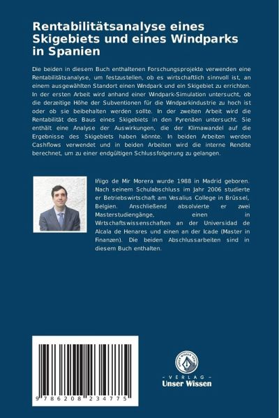 Die beiden in diesem Buch enthaltenen Forschungsprojekte verwenden eine Rentabilitätsanalyse, um festzustellen, ob es wirtschaftlich sinnvoll ist, an einem ausgewählten Standort einen Windpark und ein Skigebiet zu errichten. In der ersten Arbeit wird anhand einer Windpark-Simulation untersucht, ob die derzeitige Höhe der Subventionen für die Windparkindustrie zu hoch ist oder ob sie beibehalten werden sollte. In der zweiten Arbeit wird die Rentabilität des Baus eines Skigebiets in den Pyrenäen untersucht. Sie enthält eine Analyse der Auswirkungen, die der Klimawandel auf die Ergebnisse des Skigebiets haben könnte. In beiden Arbeiten werden Cashflows verwendet und in beiden Arbeiten wird die interne Rendite berechnet, um zu einer endgültigen Schlussfolgerung zu gelangen.
