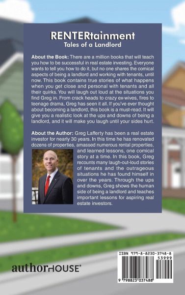 There are hundreds of books on how to build wealth through real estate investing. However, almost none show you what happens when your new tenant turns out to be a crack dealer or your bathtub disappears overnight. In RENTertainment, veteran landlord and accidental comedian Greg Lafferty takes you behind the scenes of his 30-year real estate journey. It is filled with true-and truly outrageous-stories from the front lines of property management. From bizarre maintenance calls and drug-dealing neighbors to frogs in the plumbing and vanishing fixtures, Greg delivers an unfiltered, laugh-out-loud account of life as a landlord. This book is more than entertainment. With each tenant horror story comes a lesson in real estate wisdom. The result is part memoir, part cautionary tale, and part how-to guide for anyone thinking about diving into rental property ownership. Aspiring real estate investors, landlords, and fans of business humor will find valuable insights wrapped in wit and grounded in real-world experience. Whether you are looking to build passive income or just enjoy stories of tenant drama and real estate disasters, RENTertainment offers a front-row seat to the madness. It also reveals the method behind the rental business. Read it. Laugh hard. Learn smarter.