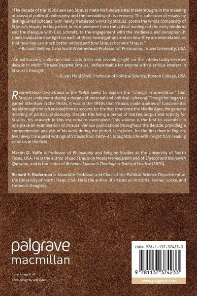 "An exhilarating collection that casts fresh and revealing light on the intellectually decisive decade in which 'Strauss became Strauss.' Indispensable for anyone with a serious interest in Strauss's thought." Susan Meld Shell, Professor of PoliticalScience, Boston College