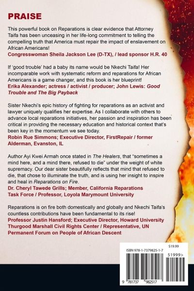 Reparations on Fire describes history-in-the-making. It combines a historical survey and commentary on the Reparations Movement in America while addressing how pioneering reparations legislation is being born and debated in city council chambers and statehouses nationwide. It is part historical analysis, part revolutionary manifesto, and part political red-alert. Reparations on Fire brings additional value to the Reparations Movement as it goes about the necessary task of concretizing its goals and objectives and envisioning a future where Black freedom and joy can flourish. It describes how reparations went from being discussed in the radical margins of the Civil Rights Movement to the Caribbean Community (CARICOM) and the General Assembly of the United Nations. It outlines how unsung Black Power activists such as Queen Mother Moore and Imari Obadele set the foundations for reparations to be championed by U.S. Rep John Conyers and, later, Representative Sheila Jackson Lee in the Congress of the United States -- a fight that, as this book comes out, is still being waged as reparations activists ask President Biden to sign an executive order immediately bringing a federal reparations commission to study and develop reparations proposals into existence. The quest for reparations is equal parts edgy, exciting, transformational, confrontational, messy and confusing. Reparations on Fire proves that we are now beyond rhetoric and well into action mode. Fire illuminates, purifies and brings warmth, but can also cause pain, damage and destruction. It can symbolize the eternal flame of hope, or signify ruin and demise. The spirit of reparations is sweeping the country like fire. Whether it heals or consumes depends on how America responds to its long overdue debt, and possibly portends the future of democracy, both domestic and global. ***
