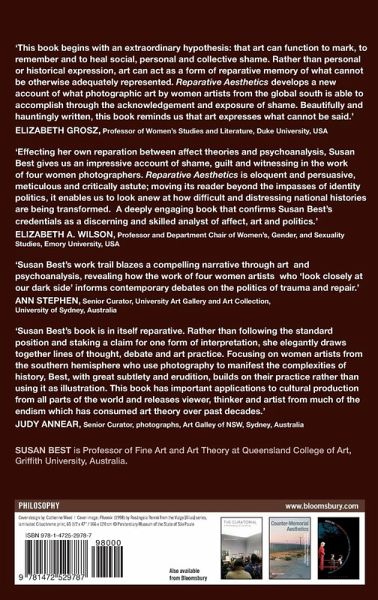 By offering a new way of thinking about the role of politically engaged art, Susan Best opens up a new aesthetic field: reparative aesthetics. The book identifies an innovative aesthetic on the part of women photographers from the southern hemisphere, who against the dominant modes of criticality in political art, look at how cultural production can be reparative. The winner of the Art Association of Australia and New Zealand best book award in 2017, Reparative Aesthetics contributes an entirely new theory to the interdisciplinary fields of aesthetics, affect studies, feminist theory, politics and photography. Conceptually innovative and fiercely original this book will move us beyond old political and cultural stalemates and into new terrain for analysis and reflection.