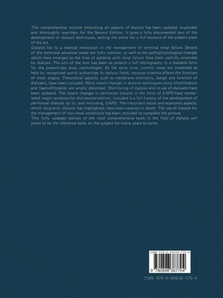 `This textbook is a major contribution to the literature on the care of dialysis patients for the specialist and generalist alike ... the depth and clarity of this text and the extensive bibliography following each chapter make it an essential addition to the library of persons who encounter either the dialyne or clinical problems of the uremic patient.'