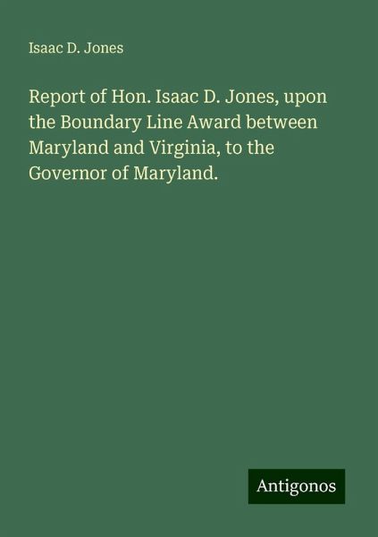 Report of Hon. Isaac D. Jones, upon the Boundary Line Award between Maryland and Virginia, to the Governor of Maryland. - Jones, Isaac D.