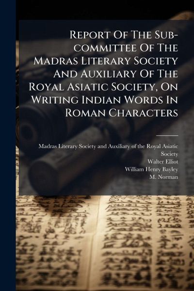 This report, originating from the Sub-committee of the Madras Literary Society and Auxiliary of the Royal Asiatic Society, delves into the complexities of representing Indian words using Roman characters. It offers insights into the challenges and considerations involved in transliteration and standardization, reflecting the scholarly pursuits of the time. The report includes the contributions of Walter Elliot, William Henry Bayley, and M. Norman, all prominent figures in the Society. A valuable resource for linguists, historians, and anyone interested in the historical approaches to language documentation and the interactions between Eastern and Western scholarly traditions, this document provides a fascinating glimpse into the efforts to bridge linguistic divides during the 19th century. It remains relevant to modern discussions on language preservation and the challenges of representing diverse scripts in a globalized world. This work has been selected by scholars as being culturally important, and is part of the knowledge base of civilization as we know it. This work was reproduced from the original artifact, and remains as true to the original work as possible. Therefore, you will see the original copyright references, library stamps (as most of these works have been housed in our most important libraries around the world), and other notations in the work. This work is in the public domain in the United States of America, and possibly other nations. Within the United States, you may freely copy and distribute this work, as no entity (individual or corporate) has a copyright on the body of the work. As a reproduction of a historical artifact, this work may contain missing or blurred pages, poor pictures, errant marks, etc. Scholars believe, and we concur, that this work is important enough to be preserved, reproduced, and made generally available to the public. We appreciate your support of the preservation process, and thank you for being an important part of keeping this knowledge alive and relevant.