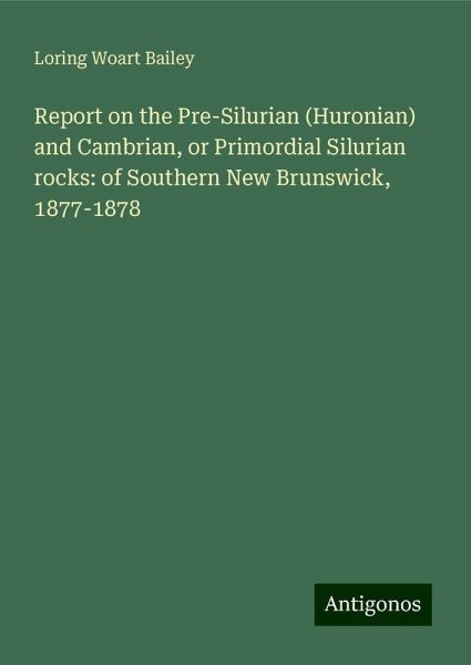 Report on the Pre-Silurian (Huronian) and Cambrian, or Primordial Silurian rocks: of Southern New Brunswick, 1877-1878 - Bailey, Loring Woart