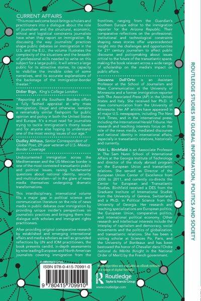 This interdisciplinary, international volume fills a major gap in political science and communication literature on the role of news media in public debates over immigration by providing unique insider's perspectives on journalistic practices and bringing them into dialogue with scholars and immigrant rights practitioners. The contributors' comparative reflections on the professional, institutional, and technological constraints shaping news stories offer unprecedented insight into the challenges and opportunities for 21st century journalism to affect public discourse and policymaking about issues critical to the future of the transatlantic space, making the book relevant across a wide range of scholarship on the media's impact on public affairs.