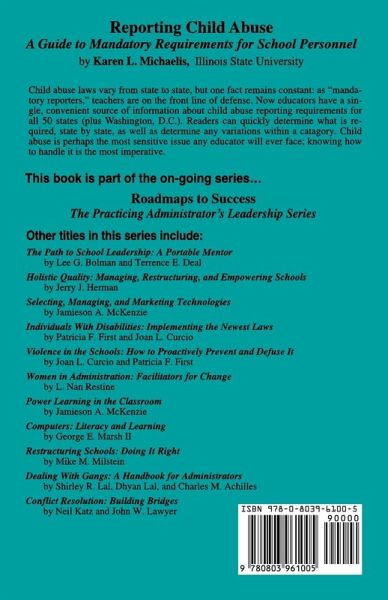 Based on an analysis of American state reporting statutes, this book provides a general statement about child abuse reporting requirements. In so doing, it highlights areas that need to be considered by school personnel when reporting suspected child abuse. Topics examined include: mandatory requirements to report child abuse and neglect; the required content of a child abuse report; school district responsibilities related to child abuse situations; and immunity provision for those reporting child abuse.