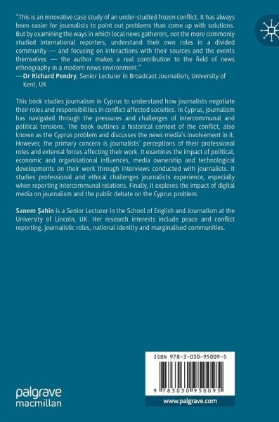 1. Introduction.- The Cyprus Problem and Journalism.- About the Book.- References.- 2. Understanding Journalism.- Journalistic Roles and Performance.- Digital Journalism.- Conflict, Peace and Journalism.- Patriotism and Journalism in Conflicts.- Peace and Journalism.- Peace Journalism.- Conflict, Peace and Journalism in Cyprus.- References.- 3. News Media and the Conflict in Cyprus.- Understanding the Cyprus Conflict.- The Establishment of the Republic of Cyprus.- After the Division.- The Cyprus Peace Process.- Media and the Cyprus Problem.- Broadcasting.- Media After the Division.- Journalism and Conflict in Cyprus.- Political Party Journalism.- Conclusion.- References.- 4. Journalistic Roles in Cyprus.- Professional Journalism in Cyprus.- Autonomy.- Professional Organisations.- Education.- Influences on Journalism.- The Cyprus Problem and Self-Censorship.- Turkey.- Political Forces.- Economic Forces.- Media Ownership.- Journalists' Role Perceptions.- Ethical Concerns.- Conclusion.- References.- 5. The Peace Process and Journalism in Cyprus.- Journalism in Divided Communities.- Asymmetry in the Flow of Information.- Interaction Between Journalists.- Patriotism.- Journalism and Peace Negotiations.- Negotiations.- Polarisation.- Commercial Pressures.- Journalists' Role in Reconciliation.- Conclusion.- References.- 6. Digital Journalism in Cyprus.- A Shift in Relations.- Digital Journalism.- Audience.- Sources.- Digital Media and the Cyprus Problem.- Peacebuilding and Social Media.- Journalism, Peacebuilding and Digital Media.- Ethical Concerns.- Conclusion.- References.- 7. Conclusion.- Conclusions.- The Way Forward.- References.