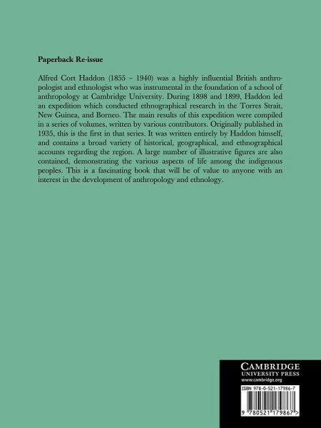 Alfred Cort Haddon (1855-1940) was a highly influential British anthropologist and ethnologist who was instrumental in the foundation of a school of anthropology at Cambridge University. During 1898 and 1899, Haddon led an expedition which conducted ethnographical research in the Torres Strait, New Guinea, and Borneo. The main results of this expedition were compiled in a series of volumes, written by various contributors. Originally published in 1935, this is the first volume in the series. It was written entirely by Haddon himself, and contains a broad variety of historical, geographical, and ethnographical accounts regarding the region. A large number of illustrative figures are also contained, demonstrating the various aspects of life among the indigenous peoples. This is a fascinating book that will be of value to anyone with an interest in the development of anthropology and ethnology.